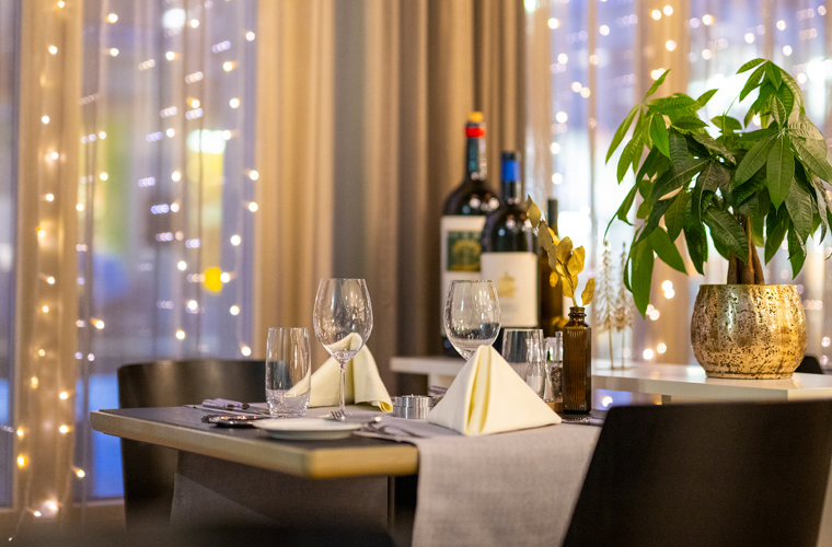 Lassen Sie sich die kulinarischen Kreationen von Küchenchef Henning Malinowski und seinem Team in unseren festlich dekorierten Speisesälen auf der Zunge zergehen. Dazu empfehlen Ihnen unsere Servicemitarbeitenden einen passenden Wein zum Menü.